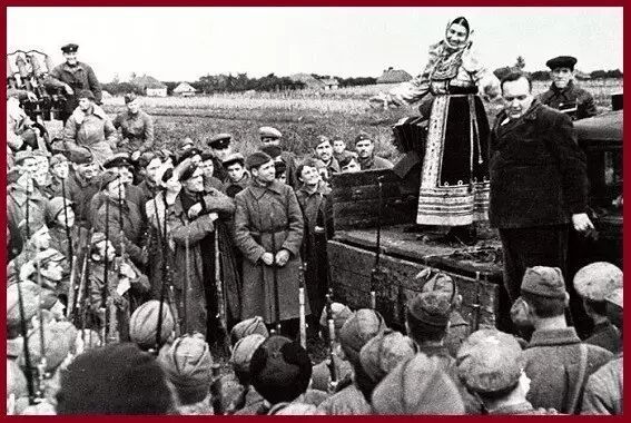 之后卫国战争爆发了,“喀秋莎”这一俄罗斯女孩里常用的名字被升华为一个深爱着前线战士的女孩,她执著地等待着那位心上人的来信,盼望在苏军服役的爱人早日归来。后来这首歌开始传唱于苏联女孩为前往战场的红军士兵们送行,而后广泛流传于全军。