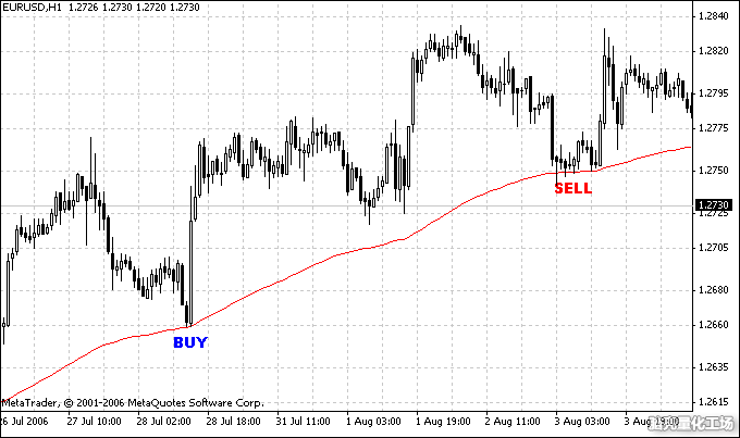 当一个上涨行情被下跌行情代替时,价格会和移动平均线顶部往下交叉。同样地,当一个下跌行情被上涨行情代替时,价格会和移动平均线底部向上交叉。在大多数移动平均线的系统中,这些交叉点被考虑作为交易信号。
