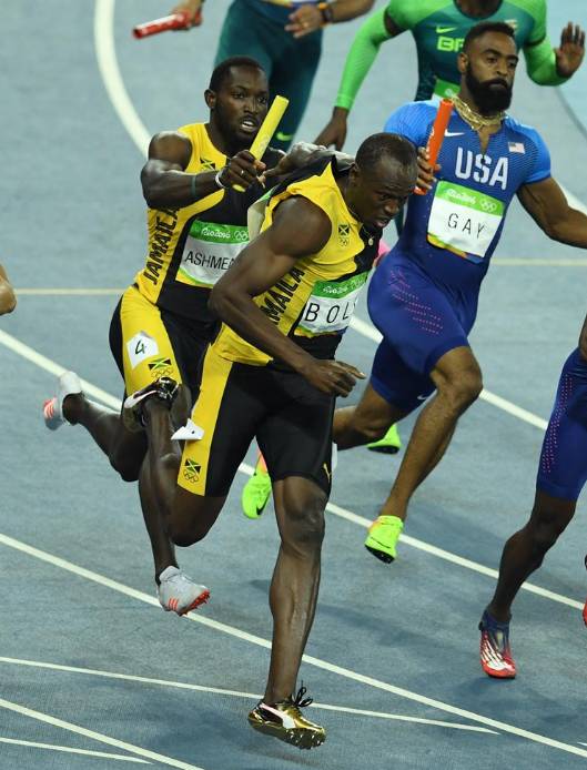 男子4X100米接力决赛中,牙买加队37秒27夺金+奥运三连冠!博尔特拿下个人奥运第9金!日本队破亚洲纪录37秒60夺银,美国队因犯规被取消成绩,加拿大队37秒64递补铜牌,中国队37秒90获第4名!