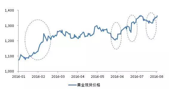 从短期来看,黄金价格的上涨有很强的驱动因素。2016年2月,沙特出兵叙利亚,黄金价格迎来第一波上涨;2016年6月,在英国脱欧的预期下,黄金价格持续上涨,6月17日,因英国留欧女议员惨遭枪杀,脱欧前景不明朗,黄金价格大跌,随后在6月24日因英国公投结果最终确定为支持脱欧,黄金价格反弹,最高涨至1375美元/盎司;近期因美国两大制造业PMI数据不及预期,加息预期减弱,黄金价格又迎来了一波上涨。中东地区的地缘冲突依然在继续,而且可能长期都无法得到解决。从针对法国、德国和美国的一系列中,。因此黄金市场值得更多的投资。