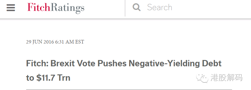 ▲惠誉:英国脱欧导致负回报债升至11.7兆美元
