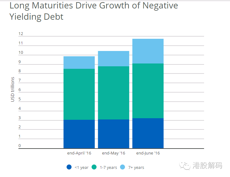 评级机构惠誉统计显示,到6月27日为止,英国脱欧事件已导致避险资金涌入安全资产,.7万亿美元,较5月底增长了1.3万亿美元,当中增长贡献最大的是高于7年的长期债券。相关担忧已导致更多长债进入负收益率,尤其是德国、法国和日本债券。