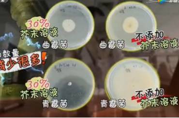 在25摄氏度的培养箱中放了一周后,观察结果发现,没有加入芥末溶液的培养皿中,不论是青霉菌还是曲霉菌都产生了大量霉菌。