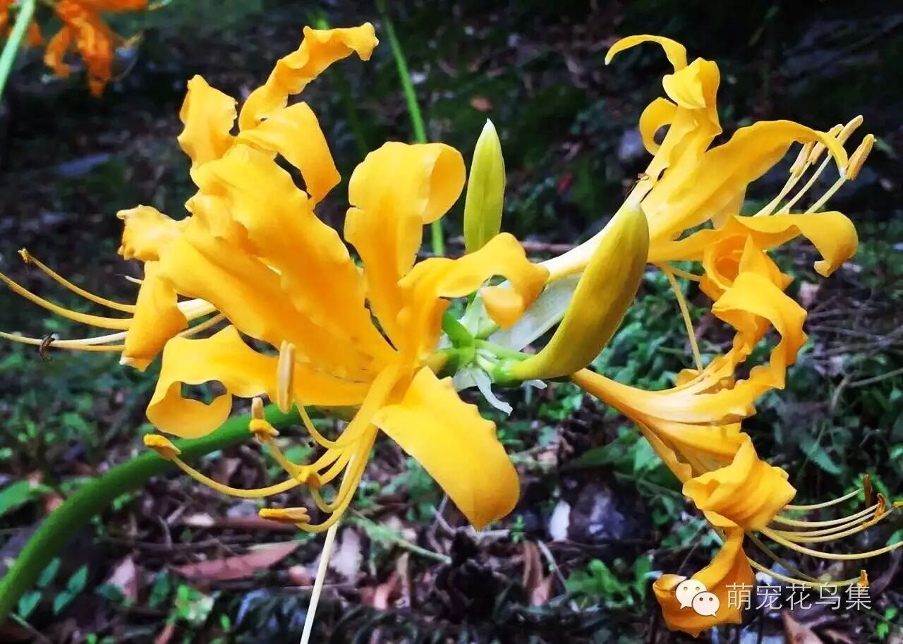 还有开黄色花的石蒜,就是被叫做“忽地笑”的。前两天,台湾刘师傅发了几张黄色石蒜花给我,看那模样,可不就像是忽然笑开了花,真是贴切得很,由是很喜欢石蒜的这个芳名——“忽地笑”。