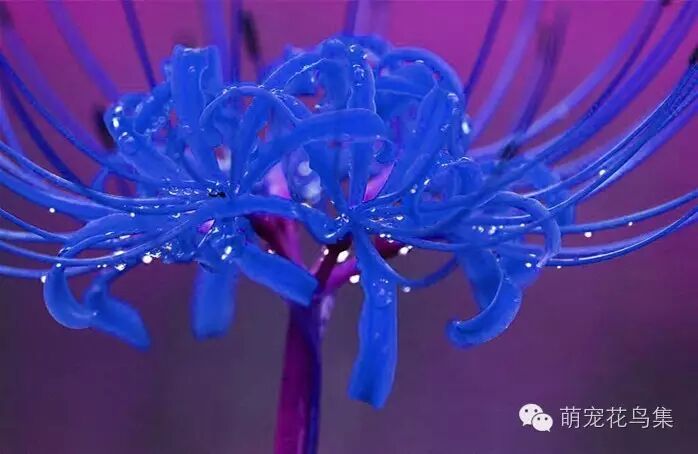网上还有非常诡异的鲜蓝色彼岸花的图片,被称作“克莱因蓝彼岸花”。“克莱因蓝”太过纯净,以至于很难找到可与之搭配的色彩,因此,它的冲击力格外强烈。这种蓝被誉为理想之蓝、绝对之蓝,其明净空旷往往使人迷失其中。事实上,这种理想的蓝色在现实中并不存在,网上可见的“克莱因蓝彼岸花”全都是PS而来的。