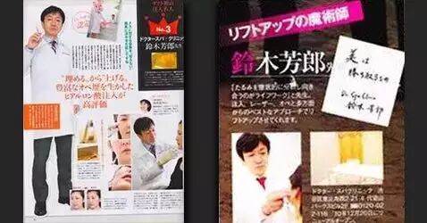 日本杂志称呼铃木大大是“埋线提升抗衰老第一人”。