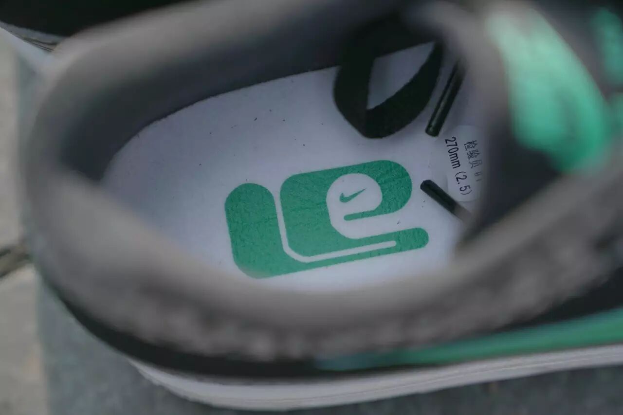 鞋款的另一大特点则在于侧身蓝绿色的swoosh logo。这个配色的官方名字叫做“Clear Jade”,与黑色的底色相搭配,显得格外醒目。
