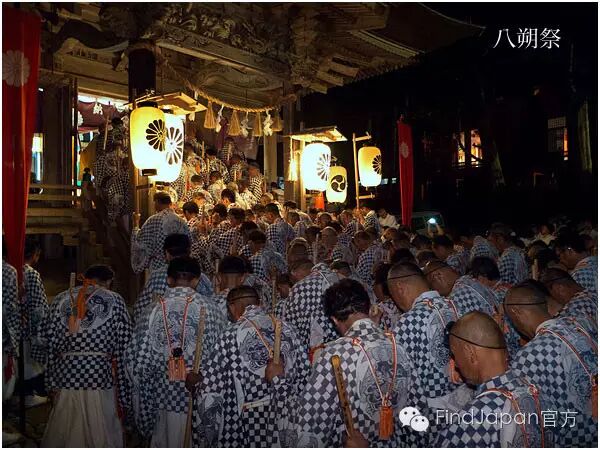 蜂子神社的例行祭典,每年农历八月初一前后举行。这时的稻子处于成熟期,八朔祭是祈求稻米顺利成熟田地平安的祭典。8月31日晚上10点,蜂子神社的例行祭典开始了。在秋峰的修行者首先要向蜂子皇子汇报修行的成果,然后点燃放置在社前护摩坛中的柴灯木,迎接诸神的降临。
