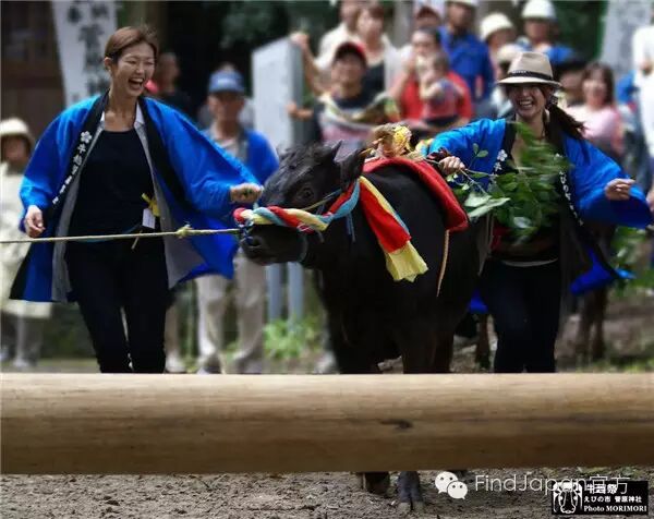 牛越祭于每年7/28在宮崎県えびの市西川北的菅原神社举行,距今已有400多年的历史。将长4m,直径25cm的圆木设置在离地面50m处,由饲主牵引盛装的小牛犊跨过圆木,以祈求耕牛无病无灾。“牛越”与“牛肥”发音相同,也含有期望牛儿越长越壮的意思哦~