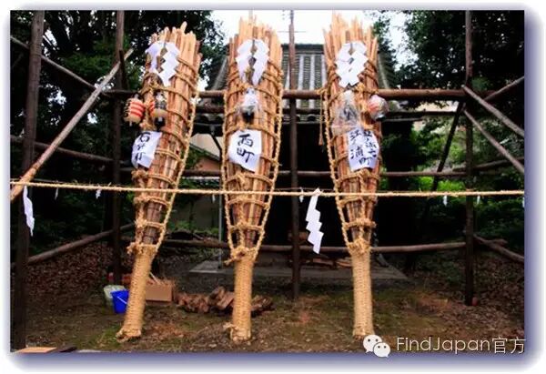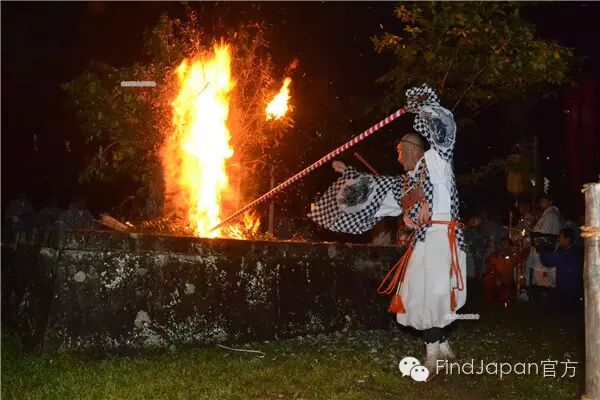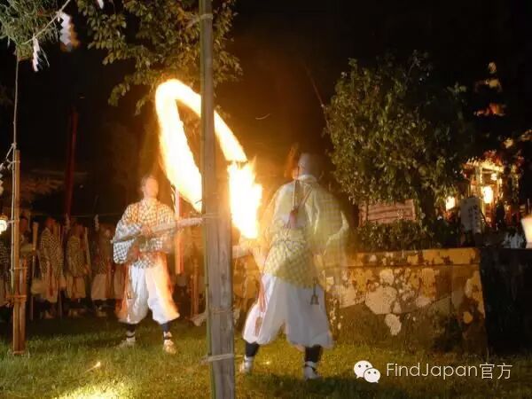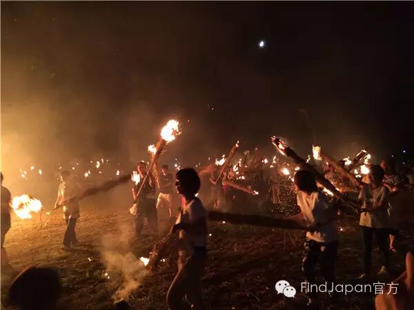 祭典还有一项活动叫做“投げ松明(扔火把)”,孩子们迎着夕阳将点燃的火把转着圈扔向事先准备好的“蜂の巣”。火把在孩子们手中转出好看的弧度,也是一道有趣的风景。