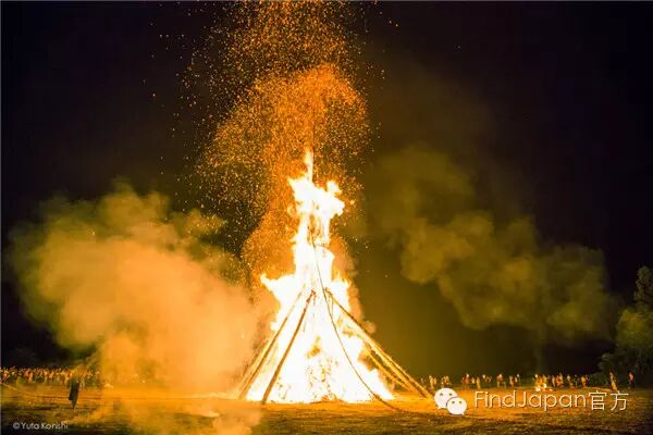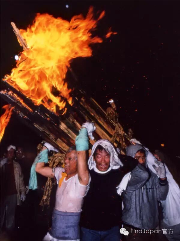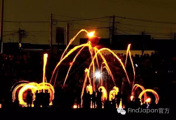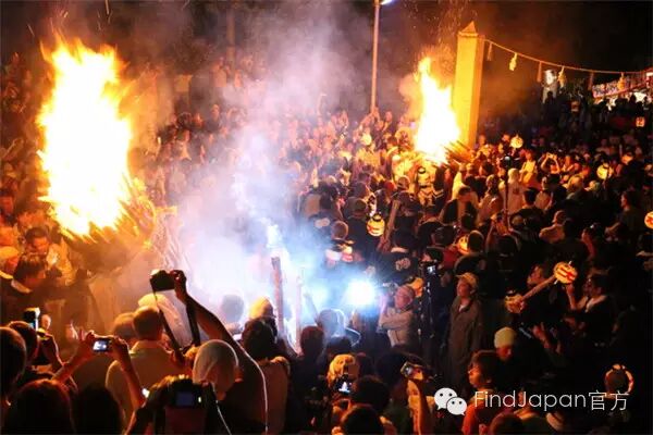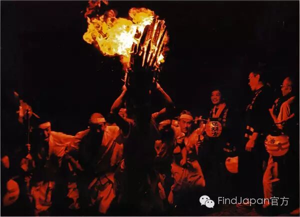 日本三大火祭典之一,每年7月的最后一个周五举行。传说越后的男神“伊夜比古神”和女神“伊夜比咩神”一年一度在此相会。祭典时会设置7个奉灯,将高约30m的大火把围绕其中,人们将手中的小火把转着圈扔向大火把,当大火把燃尽时,火把倒向的那个方向就会获得一年的丰收。