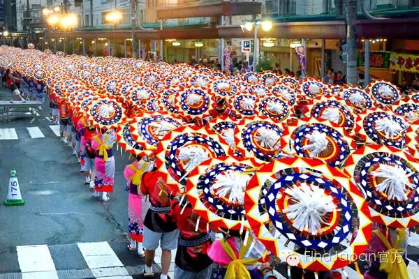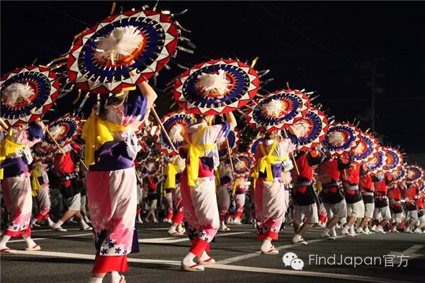 伞舞动作简单易学,每年都吸引100个团队,约4000人一起在鸟取街道手持花伞翩翩起舞,已经成为鸟取县最大的祭典之一,热闹非凡。祭典到今年已经第52届了,2015年还创下了最大规模伞舞的吉尼斯世界纪录,好想加入他们呀~