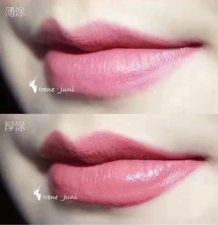 而且薄涂和厚涂的区别也是很大的,薄涂会比较日常一点,特别有少女感!厚涂色调则偏粉了~