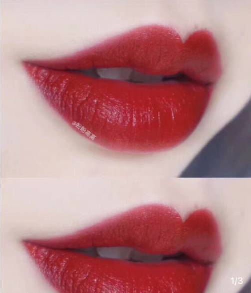 红管丝绒的质地hin轻薄,完全不粘也不干燥,色泽特别饱满,特别适合秋冬使用,上唇后整个人都透着一种高!级!感!